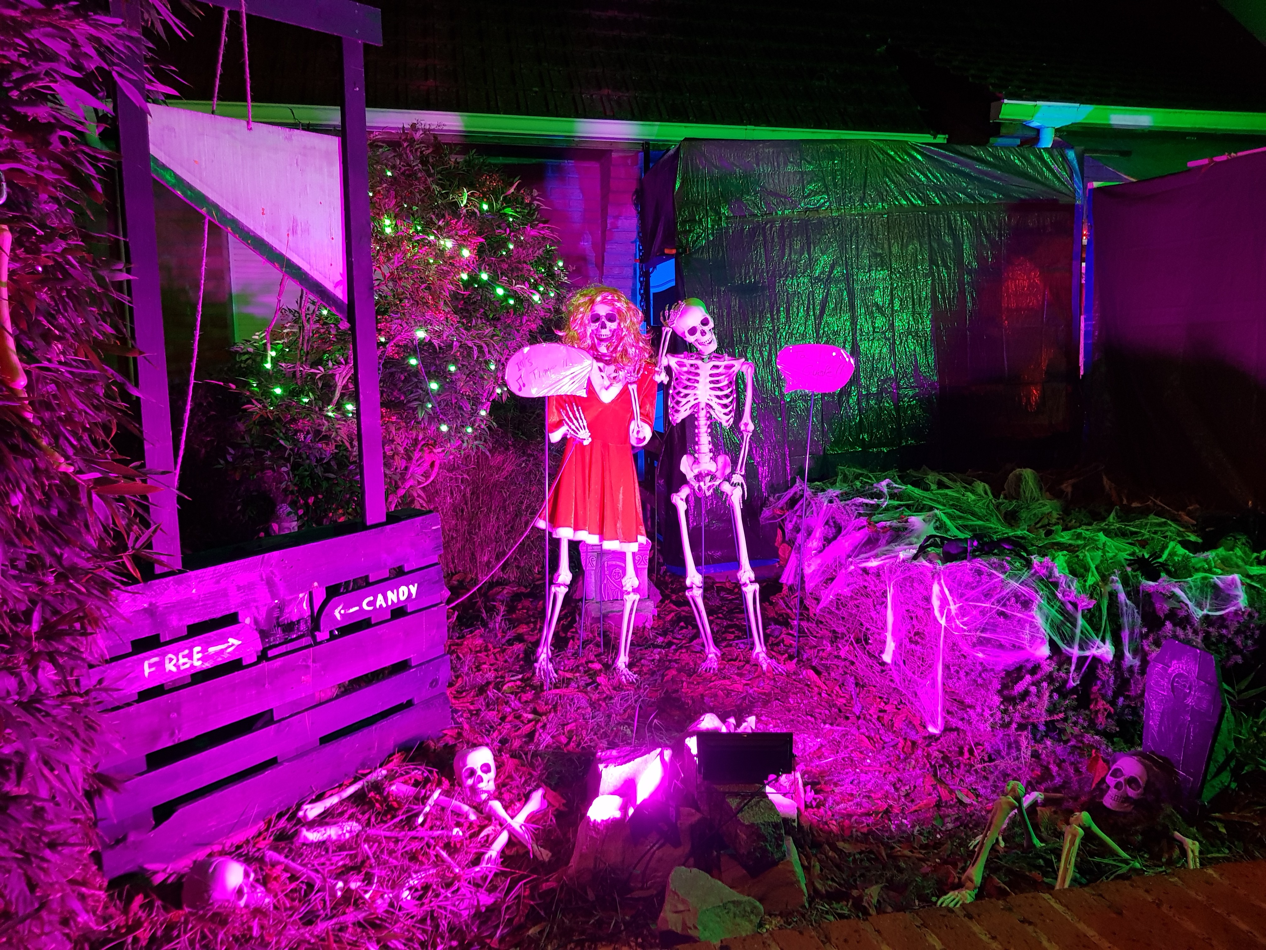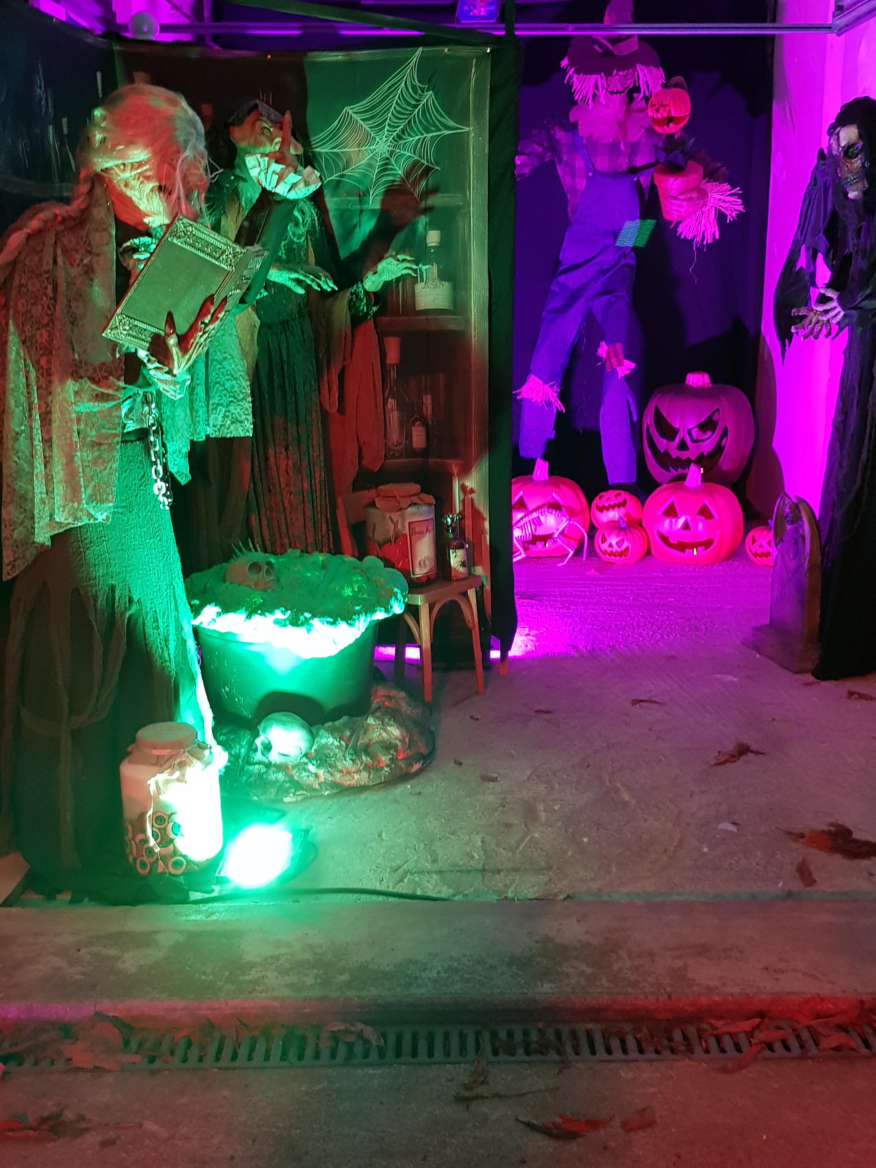 Pendant le défilé, nous avons aussi découvert de jolies décorations accrochées sur plusieurs maisons du village : guirlandes, citrouilles éclairées, silhouettes découpées, sorcières qui ont embelli le parcours et lui ont donné un air de fête. Ces décorations ont ajouté une note de surprise et de poésie à la promenade.